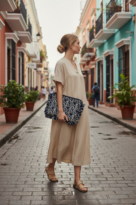 ブロックプリント・キルトPCケース / クラッチバッグ(15inch)